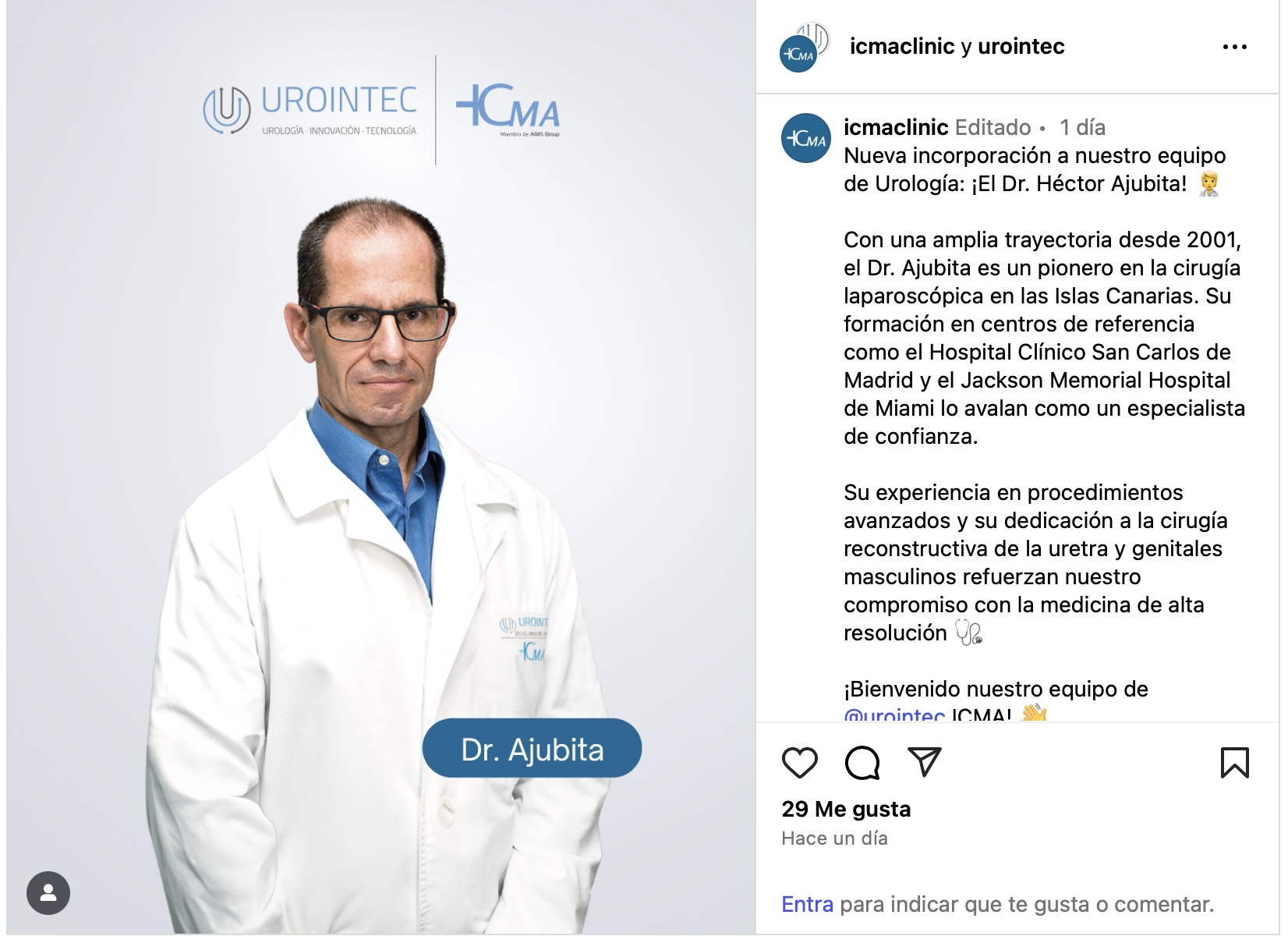 Desde de septiembre de 2025 me incorporo al Grupo ICMA AGEL para pasar consulta y realizar intervenciones quirurgicas.